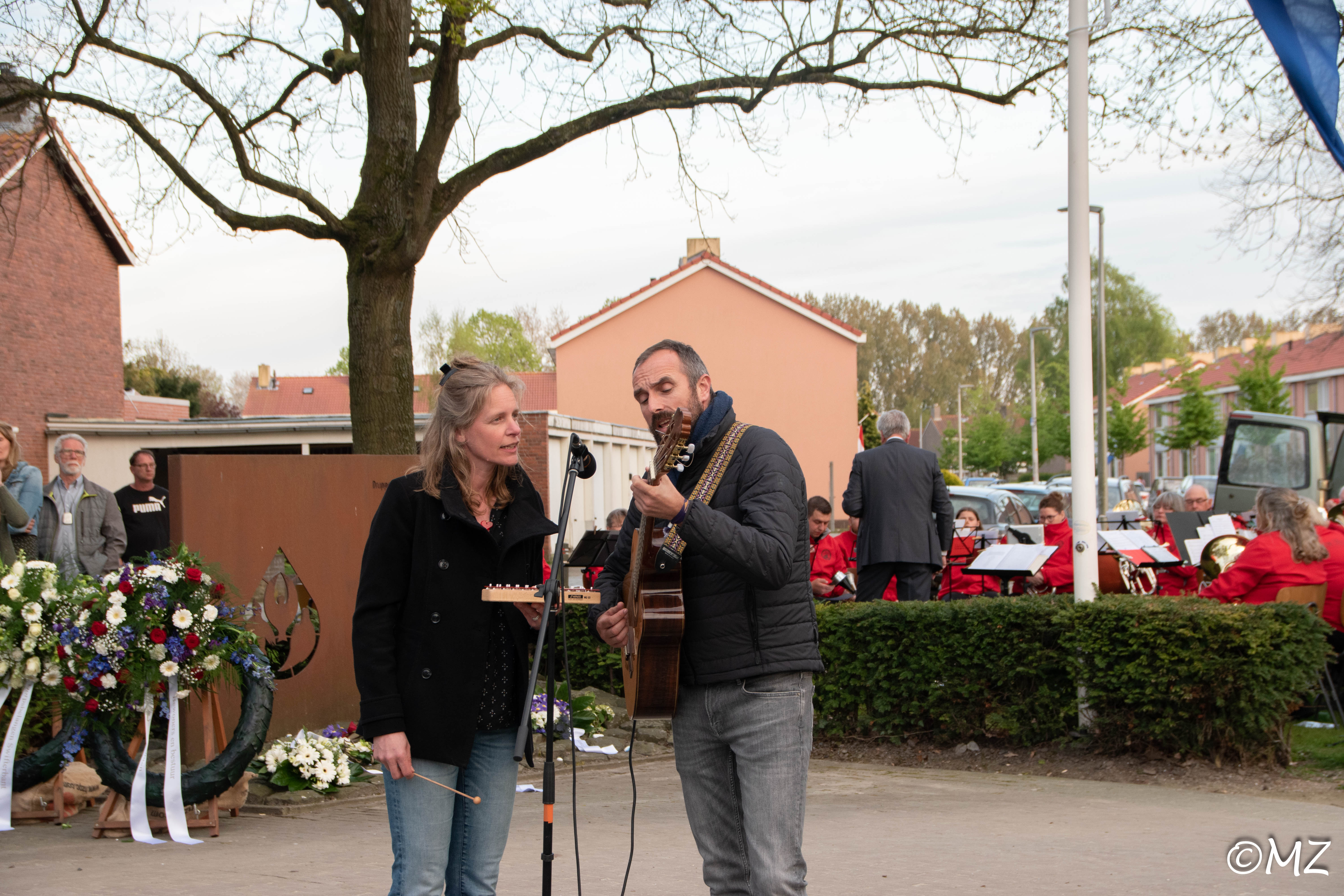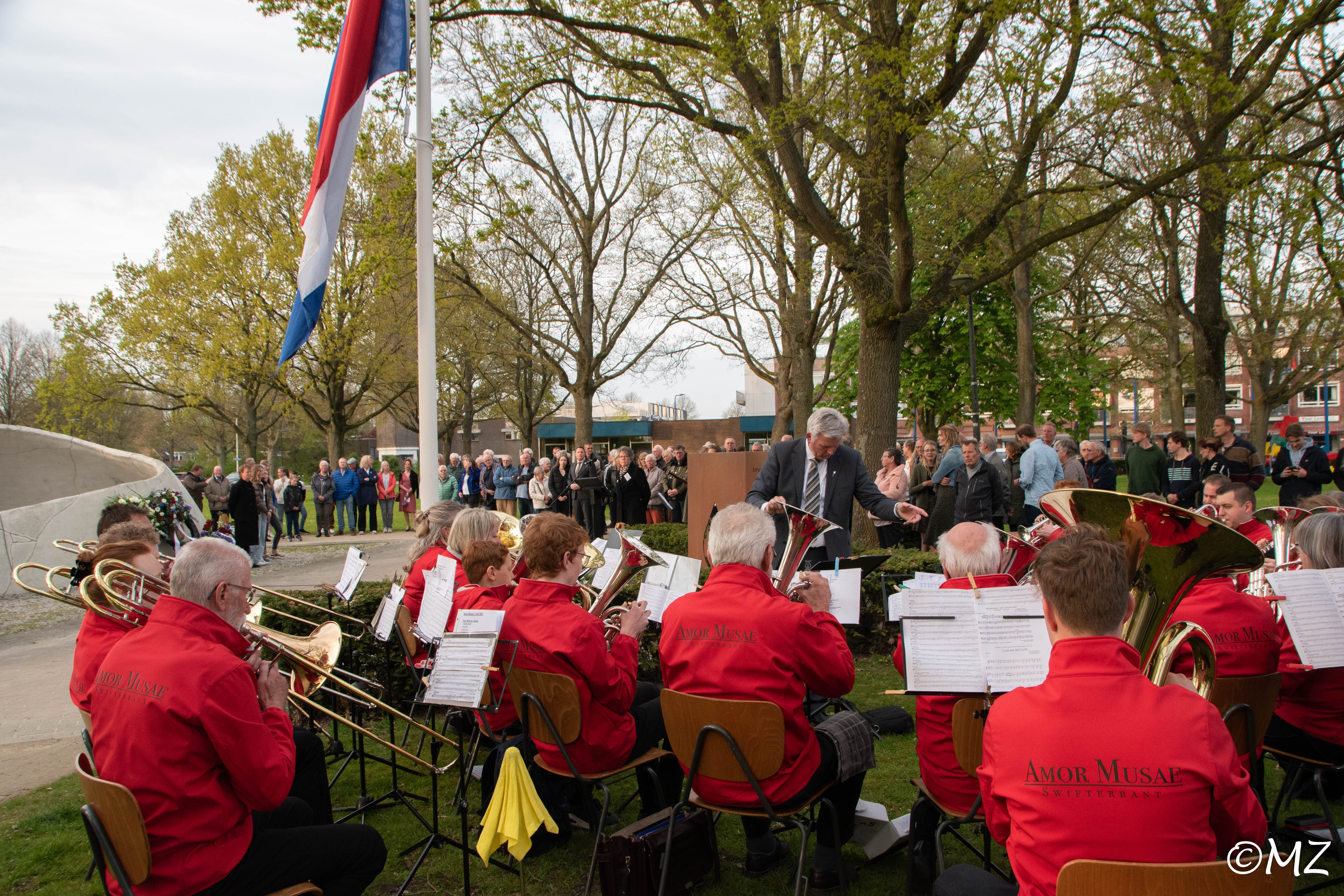 Namens de Algemene Vereniging voor Dorpsbelangen Swifterbant legde Theo den Hartog samen met Mariska van Ruitenbeek een krans. Tijdens de kranslegging speelde Amor Musae “Lied aan het licht” van Huub Oosterhuis.